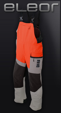 Eleorin materiaali on joustavaa kangasta, joka hylkii tehokkaasti vettä ja likaa. Avohaalareiden käyttömukavuuteen on kiinnitetty erityistä huomiota mm. sijoittamalla polvien kohdalle joustava ja hengittävä Kevlar-kangas. Viiltosuojamateriaalina käytetään ForestShieldin FS6XE innovaatiopalkittua viiltosuojaa
